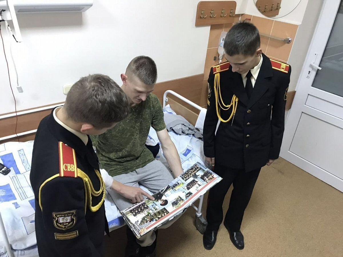Воспитанники Минского суворовского военного училища навестили гвардии старшего лейтенанта Алексея Харламова в 432-м главном военном клиническом медицинском центре Вооруженных Сил. Для юных суворовцев большая честь познакомиться с живым примером мужества и героизма.