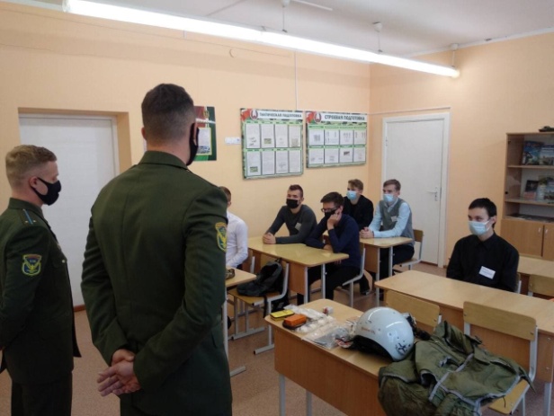 Военнослужащие войсковой части 19764 провели занятие в центре допризывной подготовки с учащимися сельских школ Минойты и Бердовки. Гвардейцы рассказали о Вооруженных Силах, особенностях поступления в военные вузы.