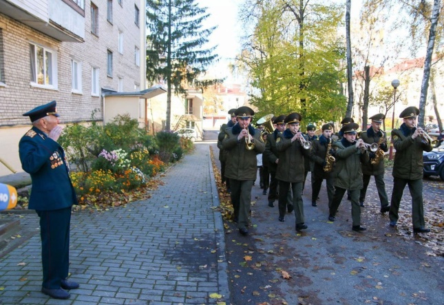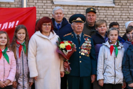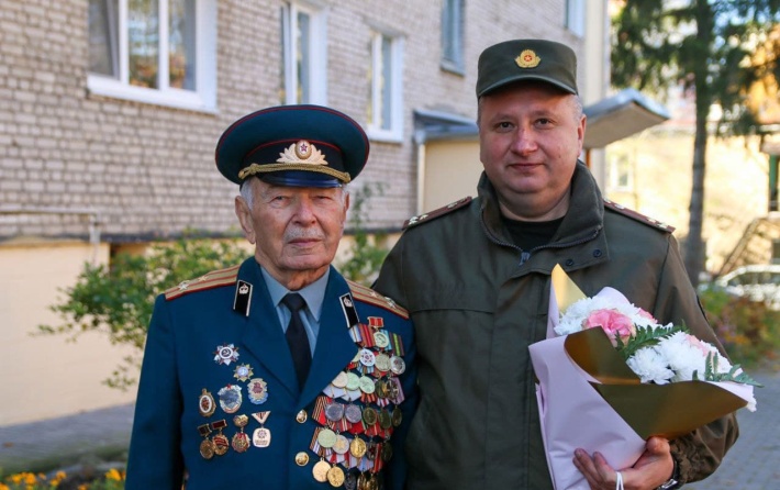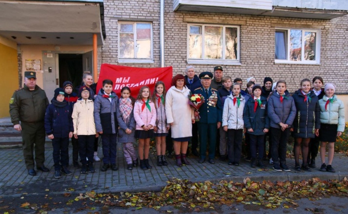 Военнослужащие, представители администрации города Гродно и школьники поздравили ветерана Великой Отечественной войны Владимира Федоровича Колесникова с 95-летним юбилеем.