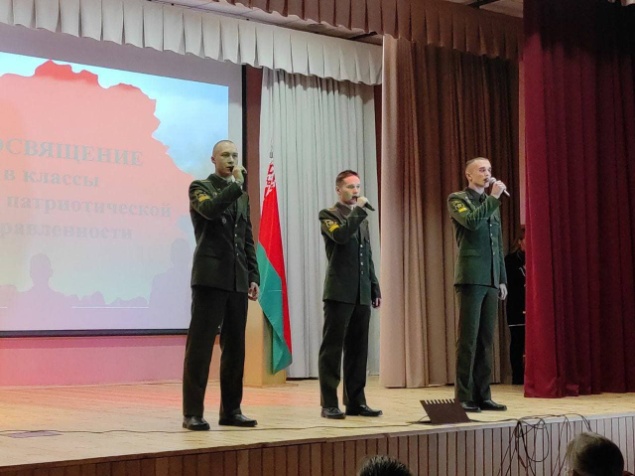 Личный состав факультета связи и автоматизированных систем управления Военной академии Республики Беларусь принял участие в проведении мероприятия по посвящению учащихся средней школы № 93 города Минска в класс военно-патриотической направленности.