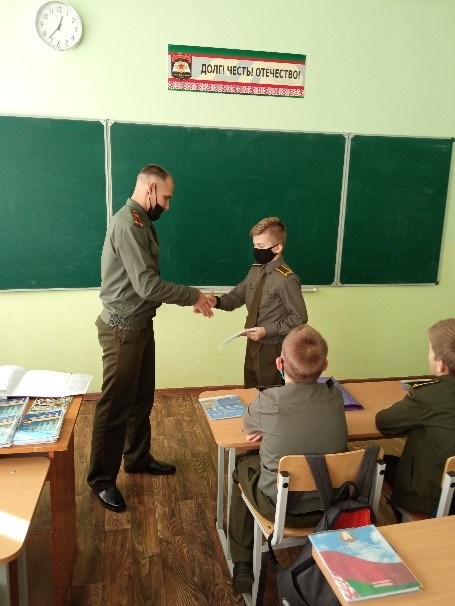 В ходе проведения занятий подведены итоги успеваемости в первой четверти, изучены правила ухода за военной формой, проведены уроки истории о Великой Отечественной войне и Уроки мужества. Хочется отметить активную работу учащихся по изучению истории родного края во времена Великой Отечественной войны.