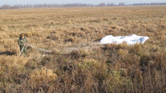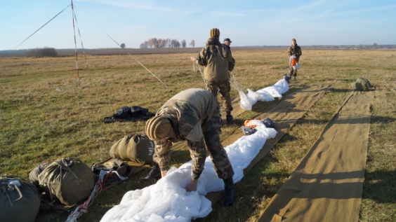 Ветер рабочий, но местами порывистый, поэтому нужна полная концентрация и внимательность. За действиями парашютистов в воздухе с площадки приземления наблюдают офицеры воздушно-десантной службы. В рупор они подсказывают военнослужащим, какие действия нужно выполнить для благоприятного приземления. Спустя несколько минут они приземляются, гасят купола, собирают парашюты. К слову, в тот день приземлялись все уверенно, строго следуя указаниям с площадки приземления. На пункте сбора, убедившись, что все благополучно десантировались, идет доклад руководителю парашютных прыжков.
