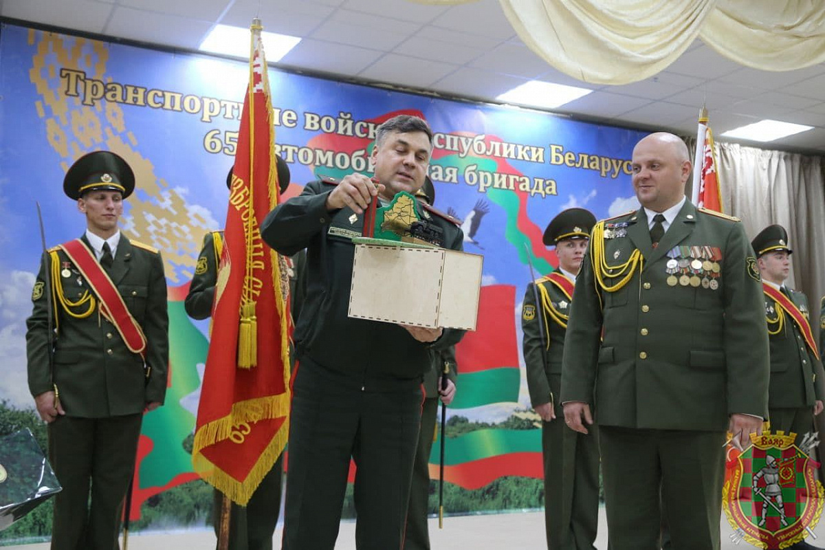 В актовом зале 65-й автомобильной бригады звучало немало слов о ратных подвигах и современных заслугах транспортных войск Беларуси из уст приглашенных на праздник почетных гостей – заместителя начальника штаба тыла Министерства обороны полковника Юрия Савича, начальника 1-го управления Департамента транспортного обеспечения полковника Андрея Романени, главы города Жодино Дмитрия Заболоцкого.