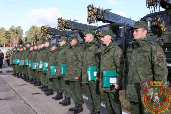 На территории 1371-й инженерной базы начальник инженерных войск Вооруженных Сил − начальник управления инженерных войск Генерального штаба Вооруженных Сил полковник Андрей Кураков в торжественной обстановке вручил ключи и документы от новых автокранов и погрузчиков специалистам, которые будут их эксплуатировать в войсках.