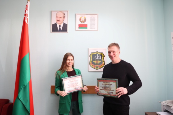 Начальник военного факультета в Белорусском государственном университете информатики и радиоэлектроники полковник Юрий Кулешов и заместитель начальника факультета по идеологической работе подполковник Александр Балабанов наградили участников проекта «День курсанта» сертификатами и памятными призами.