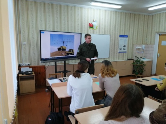 Военнослужащие войсковой части 29969 организовали урок мужества для старшеклассников Гольчицкой средней школы Слуцкого района. Молодому поколению напомнили об обязанности защищать свое Отечество, рассказали о службе в армии и возможностях получения соответствующего образования в военных вузах страны.