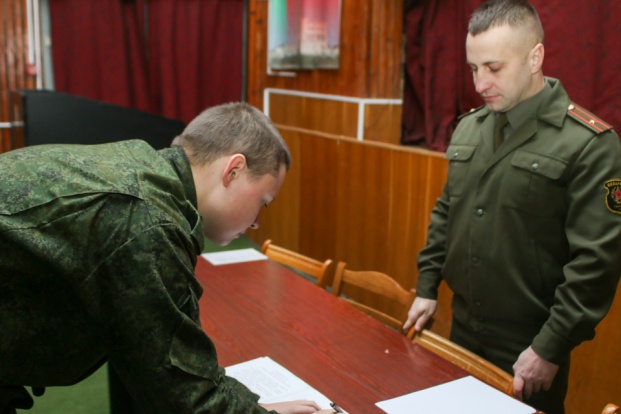 Военнослужащие, недавно пополнившие строй 557-й инженерной бригады Западного оперативного командования, приняли Кодекс чести защитника Отечества. Мероприятие прошло в торжественной обстановке в клубе воинской части. Перед личным составом с краткой речью о значении принятия Кодекса чести обратился исполняющий обязанности заместителя командира по идеологической работе – начальника отделения идеологической работы бригады майор Виталий Кислый.