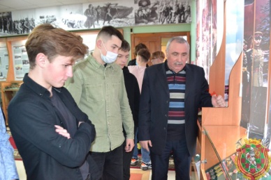 Отрадно, что немало учеников выразило желание принять участие в поисковом движении. В средней школе № 31 города Гродно создается поисковый клуб, который будет собирать сведения о судьбах защитников Беларуси 1941 года, в том числе воинах 85-й стрелковой дивизии, стойко оборонявших город Гродно в первые дни войны. О поисковой работе ребятам подробно рассказал подполковник в отставке Александр Кавун. Он представил гостям выставочную экспозицию военного комиссариата, где они прикоснулись к военной истории Отечества разных эпох, начиная от Отечественной войны 1812 года и заканчивая войной в Афганистане. Юноши с большим интересом рассматривали экспонаты и слушали рассказ ветерана Вооруженных Сил.