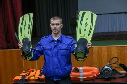 Военнослужащим рассказали о последствиях и правилах поведения на водоемах в зимний период. Были продемонстрированы водолазное оборудование и спасательные средства.