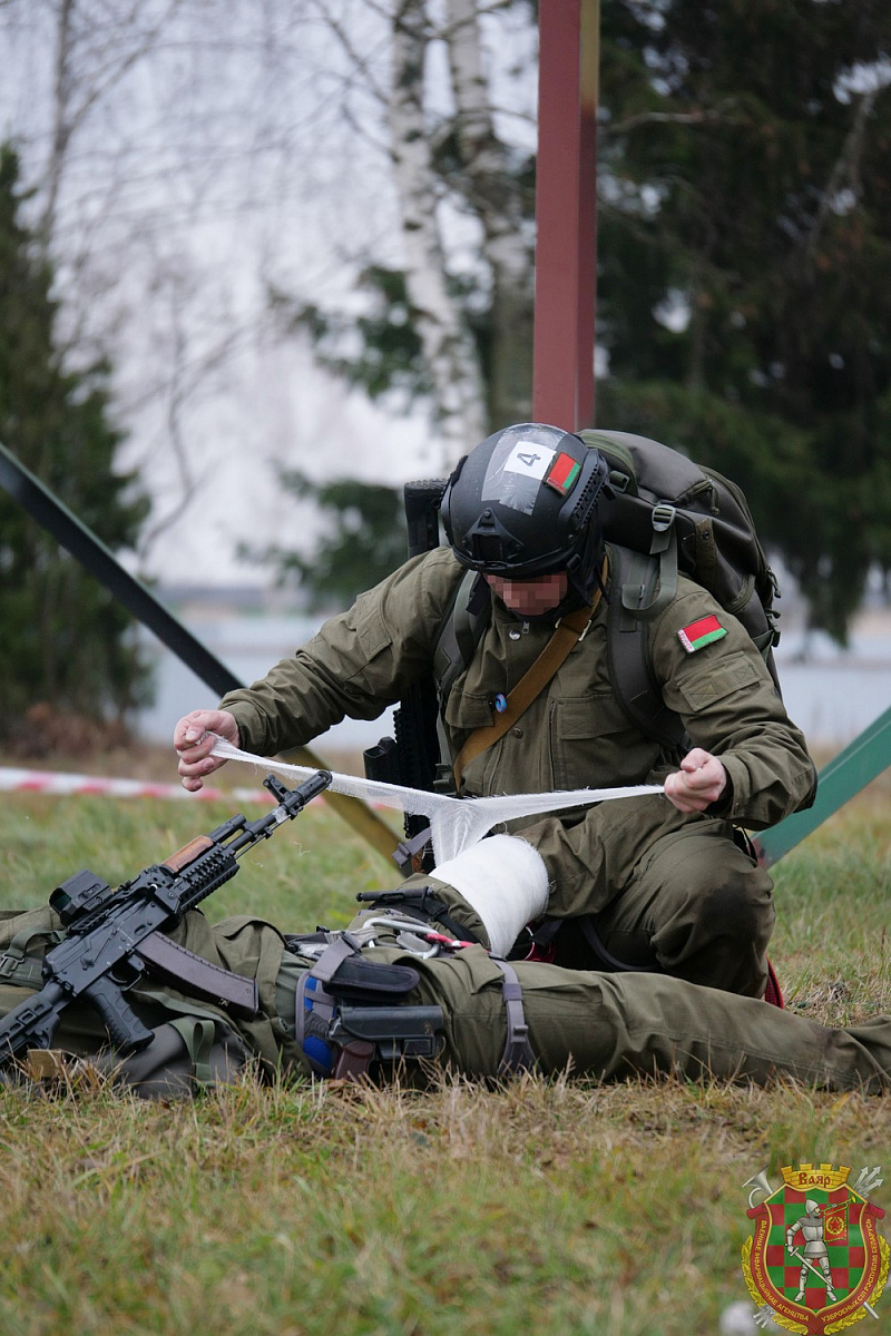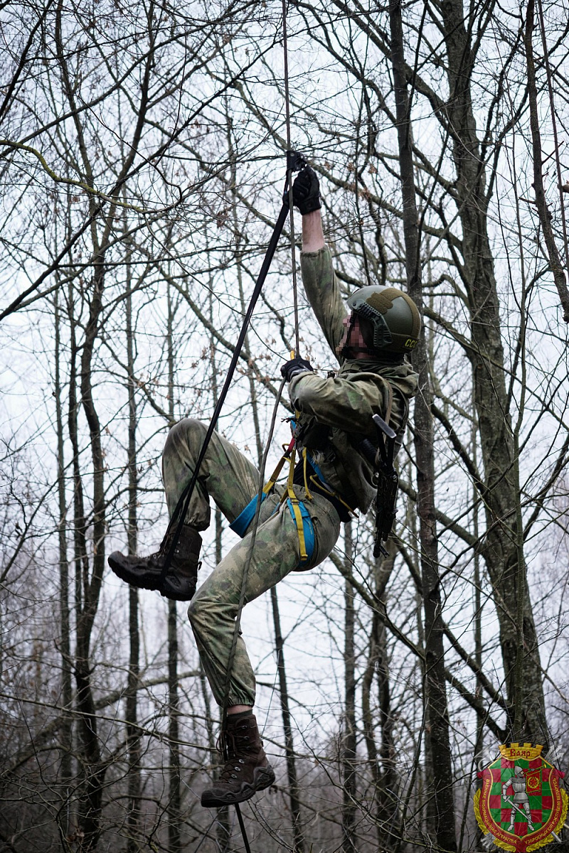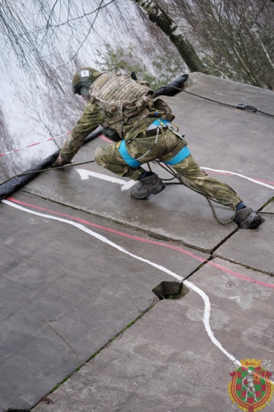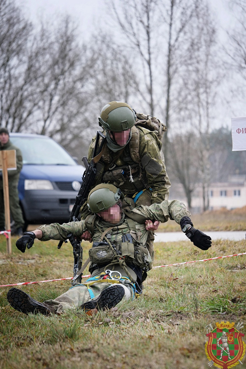 Не забыли и о проверке медицинских навыков спецназовцев. На финальном этапе участники отрабатывали элементы беспарашютного десантирования с применением специального альпинистского снаряжения. После этого одному из бойцов поступала вводная – его напарник ранен. Судья называл характер и место ранения. Задача военнослужащего – оказать первую помощь и эвакуировать «раненного». Оценивалась правильность действий участника и время выполнения задачи.