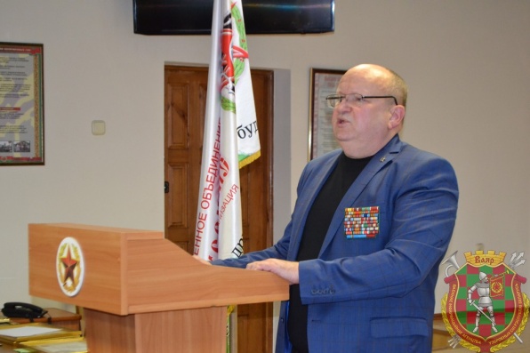 С докладом о проделанной за отчетный период работе выступил председатель совета Гродненской областной организации ОО «БСВВА» подполковник в отставке Александр Витко.