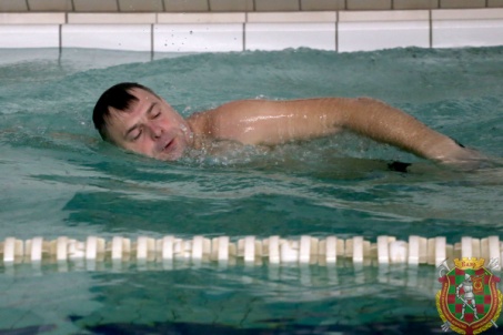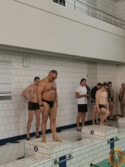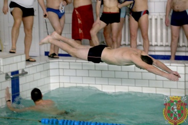 В первый день офицеры боролись за первенство в личном и командном зачетах в плавании на 50 метров вольным стилем. В возрастной категории до 40 лет не было равных лейтенанту Игнату Потоцкому. Его результат – 27,3 секунды. Также призерами в «младшей» возрастной категории стали подполковник Иван Трубин и майор Евгений Кудрейко, занявшие второе и третье места соответственно. Среди участников старше 40 лет уверенную победу с результатом 27,2 секунды одержал подполковник Павел Попов. На вторую ступень пьедестала почета поднялся полковник Сергей Чернушевич, на третью – подполковник Алексей Логин.