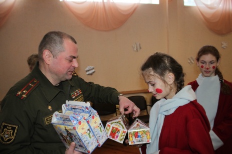 Детям школы-интерната была подарена мягкая мебель и сладости. Командование и члены профсоюзного комитета базы совместно с представителями прокуратуры Могилевской области, ведомственной охраны Могилевского отделения Белорусской железной дороги и администрацией школы-интерната поучаствовали в играх, хороводах вокруг елки, спели вместе с детьми новогодние песни.