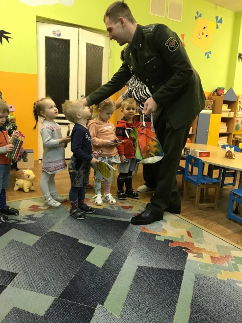 В рамках акции «Наши дети» военнослужащие войсковой части 97040 посетили детский сад № 83 города Гродно. Они провели беседу в доступной для детей игровой форме о значении Вооруженных Сил и важности защиты страны. Также вручили ребятам подарки и сувениры.