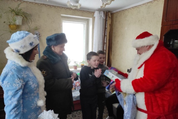 Именно такие поздравления звучали в этот день в доме многодетной семьи Екатерины Прочухановой. Поздравить их в деревню Вишневка Минского района приехали сотрудники военного комиссариата Минского района, присоединившись к благотворительной акции «Наши дети». В ходе импровизированного утренника детвора не только получила подарки от Деда Мороза и Снегурочки, но также окунулась в мир сказки.