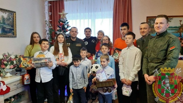Командир 85 брс полковник Владимир Колегаев поздравил детей с наступающим Новым годом и Рождеством, а так же вручил сладкие подарки.