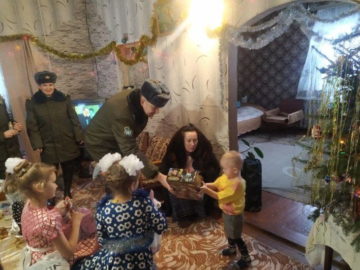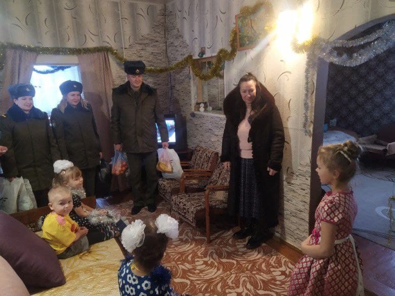В рамках благотворительной акции «Наши дети» военнослужащие 2-го радиотехнического центра 2284-го отдельного радиотехнического батальона 8-й радиотехнической бригады приехали поздравить воспитанников приемной многодетной семьи Виктории Грибовской из деревни Постолово.