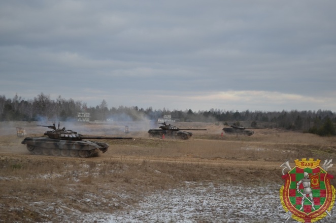 Танкисты отдельного гвардейского танкового батальона 6-й отдельной гвардейской механизированной бригады Западного оперативного командования выполняют на этой неделе 1-е упражнение контрольных стрельб из вооружения танка Т-72Б штатным артиллерийским выстрелом. Занятия по огневой подготовке на танковой директрисе Гожского полигона проходят как днем, так и ночью.