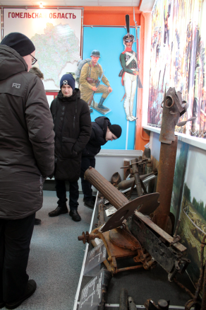 Учащиеся и преподавательский состав посетили центр поисковой работы 52-го отдельного специализированного поискового батальона, посмотрели мотивирующее видео о службе в современной белорусской армии. Школьники посетили солдатскую казарму, ознакомились с бытовыми условиями проживания, образцами формы одежды, экипировки личного состава и образцами стрелкового оружия. Примерили на себя бронежилеты и кевларовые шлемы, самостоятельно произвели неполную разборку 5,45-мм автомата Калашникова и 9-мм пистолета Макарова под руководством офицера воинской части.