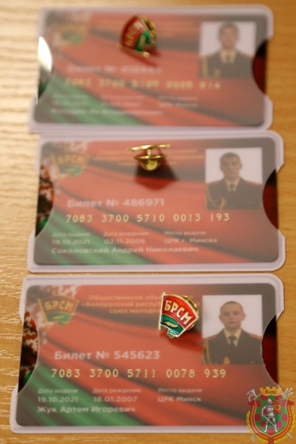 В ряды Центральной районной организации города Минска ОО «БРСМ» вступило более 140 суворовцев. Мероприятие прошло в торжественной обстановке в музее училища. Воспитанникам МСВУ были вручены членские билеты нового образца и значки с символикой самой массовой молодежной общественной организации нашей страны.