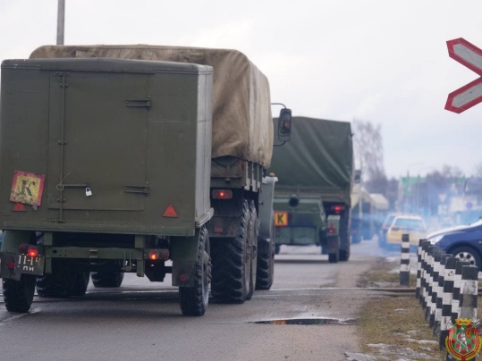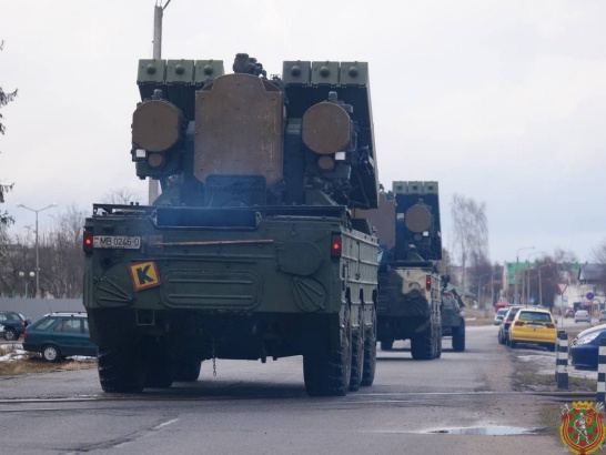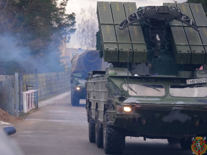 Военнослужащие 740-го зенитного ракетного полка, принимающие участие в проверке сил реагирования Союзного государства на территории Беларуси, совершают марш в пункт постоянной дислокации.