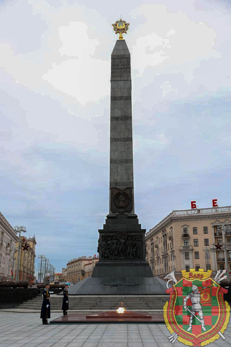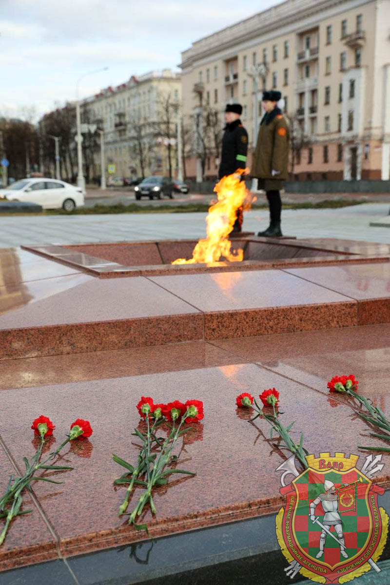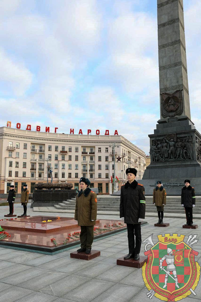 На площади Победы воспитанники Минского суворовского военного училища отдали дань уважения бессмертному подвигу советского народа, низко склонили головы перед павшими на полях сражений и теми, кто был замучен в концлагерях.