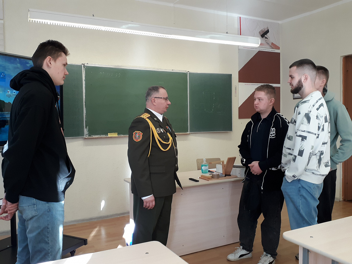 Очередной шаг в информационно-образовательном проекте Школа Активного Гражданина прошел в учреждении образования «Гродненский государственный профессиональный лицей строителей №1» с участием активиста Белорусского союза офицеров, члена Союза писателей Беларуси, специального корреспондента военного информационного агентства «Ваяр» Вооруженных Сил Республики Беларусь подполковника Александра Севенко. Заседание Школы было посвящено Вооруженным Силам Республики Беларусь, которые составляют основу военной организации государства и предназначены для обеспечения военной безопасности и вооруженной защиты Республики Беларусь, ее суверенитета, независимости и территориальной целостности. На встрече с офицером присутствовали группа 411 с куратором М.И. Басинской, информаторы и старосты из всех групп.