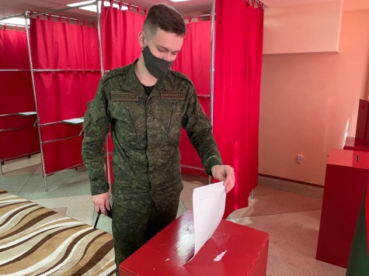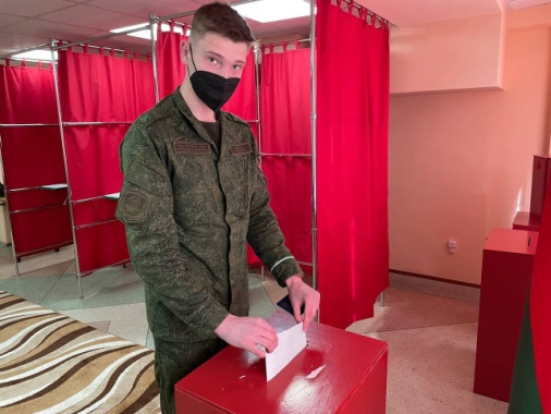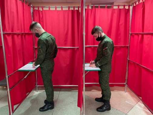 Курсанты военного факультета в Белорусском государственном университете информатики и радиоэлектроники приняли участие в досрочном голосовании на референдуме по вопросу внесения изменений и дополнений Конституции Республики Беларусь.