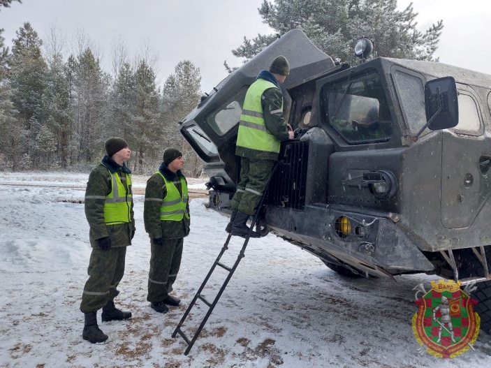 Обучаемые выполняли упражнение «Вождение машин по ограниченным проездам».