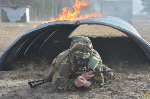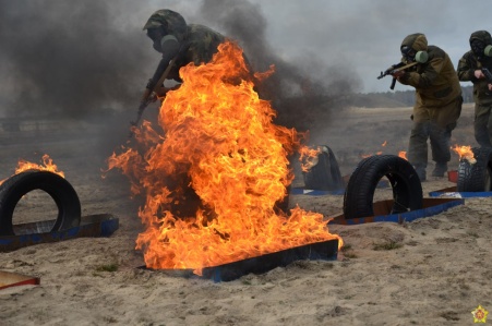 C личным составом подразделений РХБ защиты 103-й Витебской воздушно-десантной и 38-й Брестской десантно-штурмовой бригад проводятся плановые практические занятия на огненно-штурмовой полосе.
