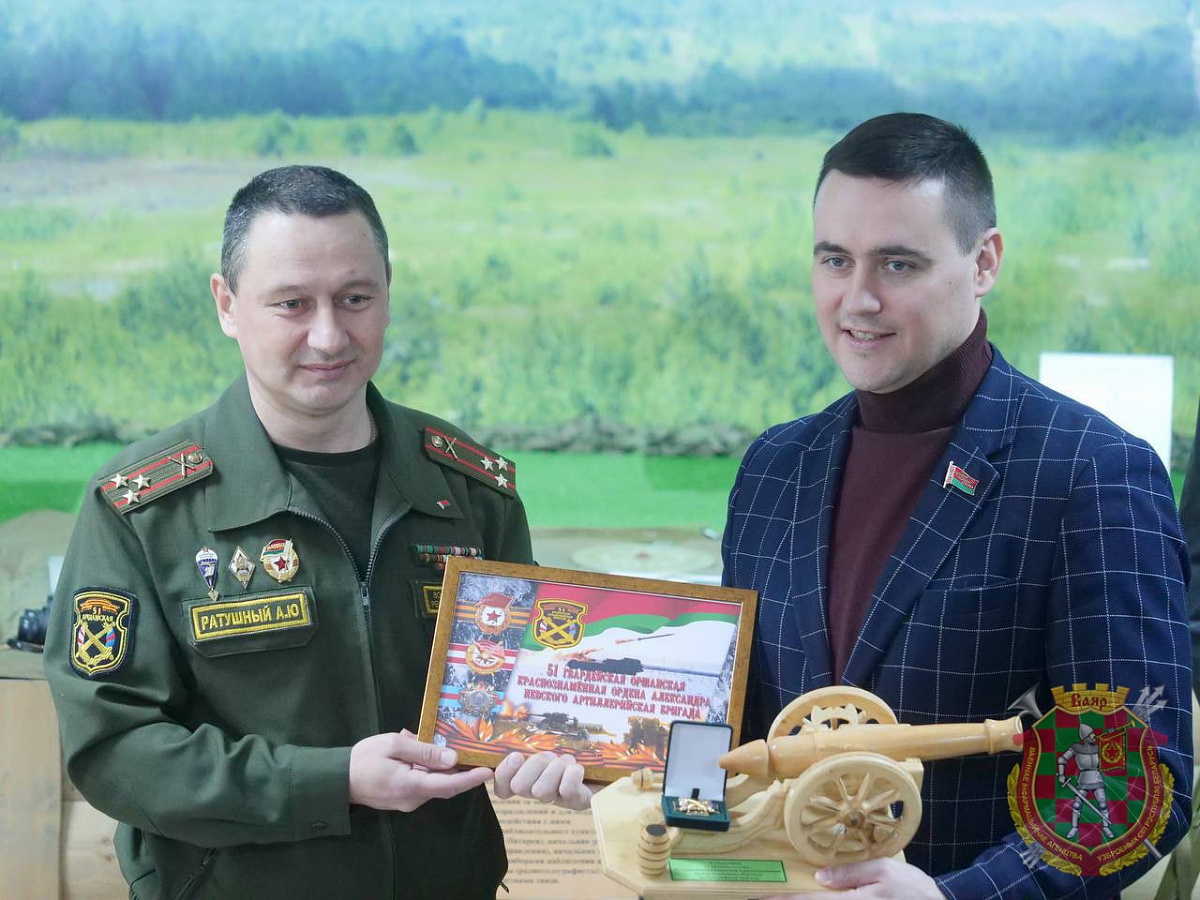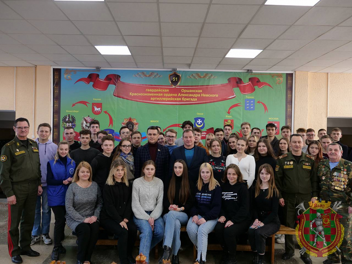 В клубе 51-й гвардейской артиллерийской бригады прошла диалоговая площадка. В ней приняли участие министр образования Республики Беларусь Андрей Иванец, начальник ракетных войск и артиллерии Вооруженных Сил – начальник управления ракетных войск и артиллерии Генерального штаба Вооруженных Сил генерал-майор Геннадий Козловский, командир 51 абр гвардии полковник Алексей Ратушный, представители Осиповичского райисполкома, местных учреждений образования, а также студенческая молодежь из разных уголков Беларуси.