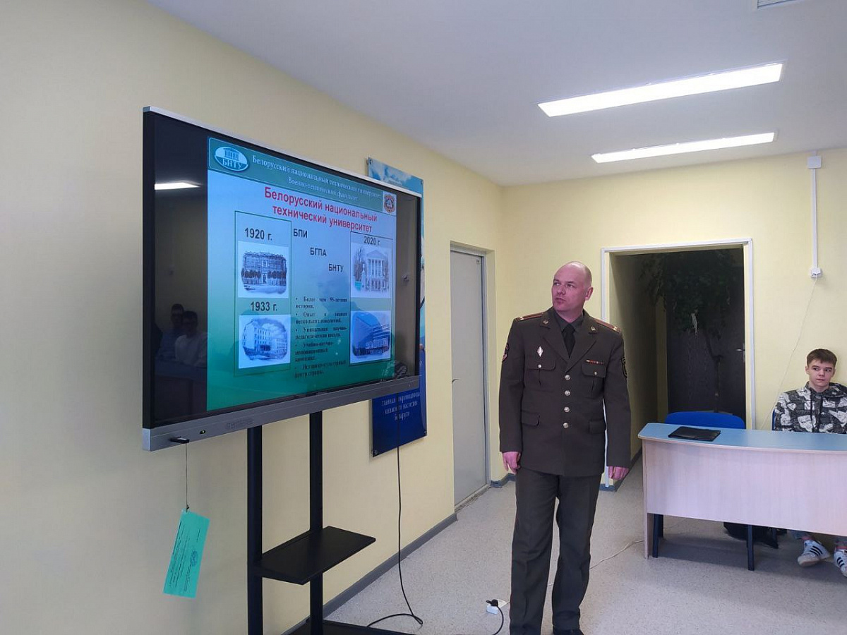 Недавно начальником цикла кафедры «Военная автомобильная техника» военно-технического факультета в Белорусском национальном техническом университете подполковником А.В. Менченей были проведены профориентационные беседы с учащимися 10-11-х классов в Гродненском областном кадетском училище и средних школах № 33, № 39, № 41 города Гродно.
