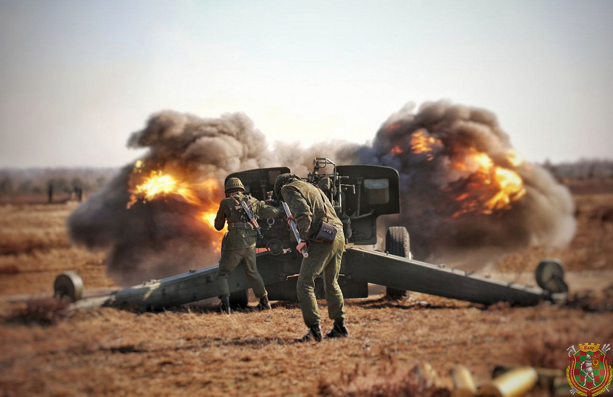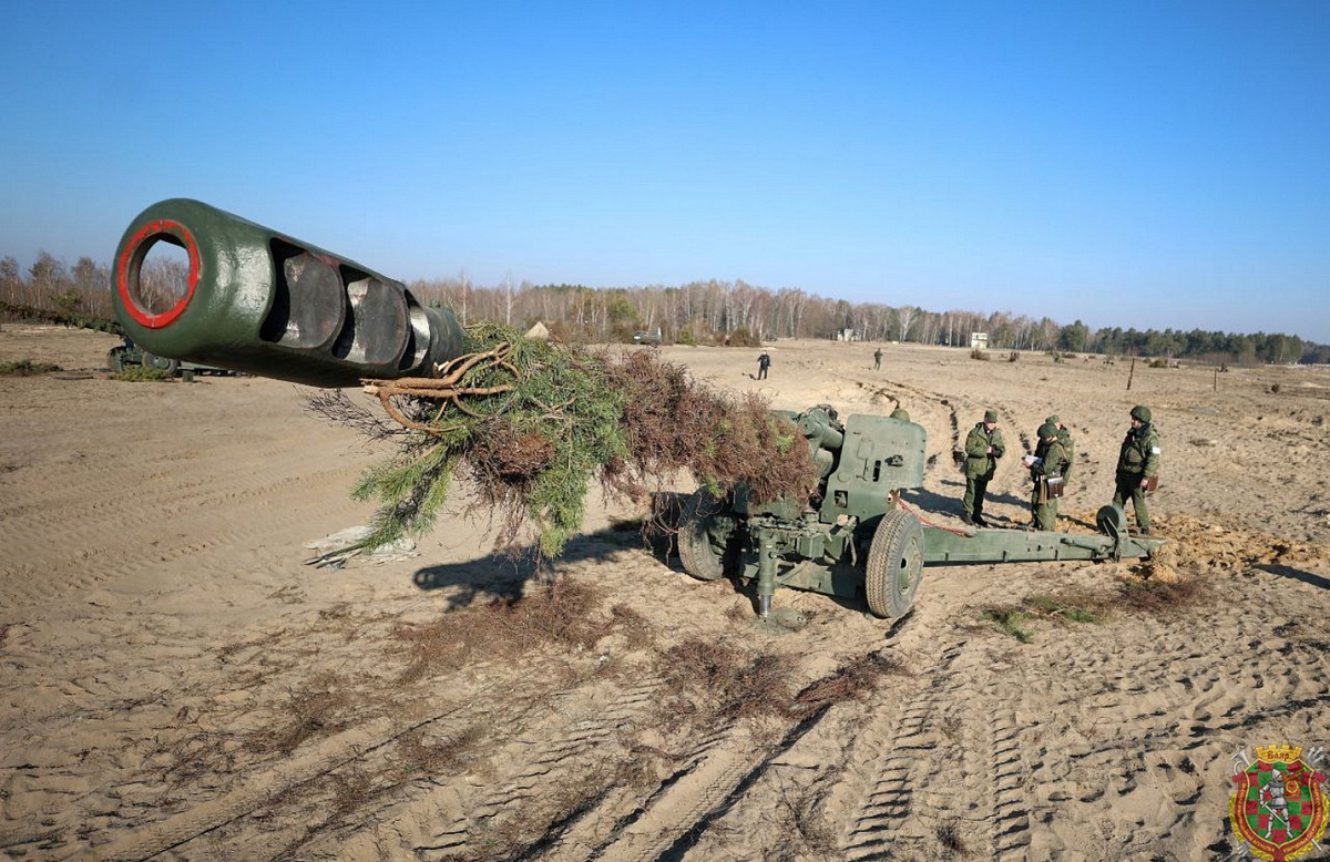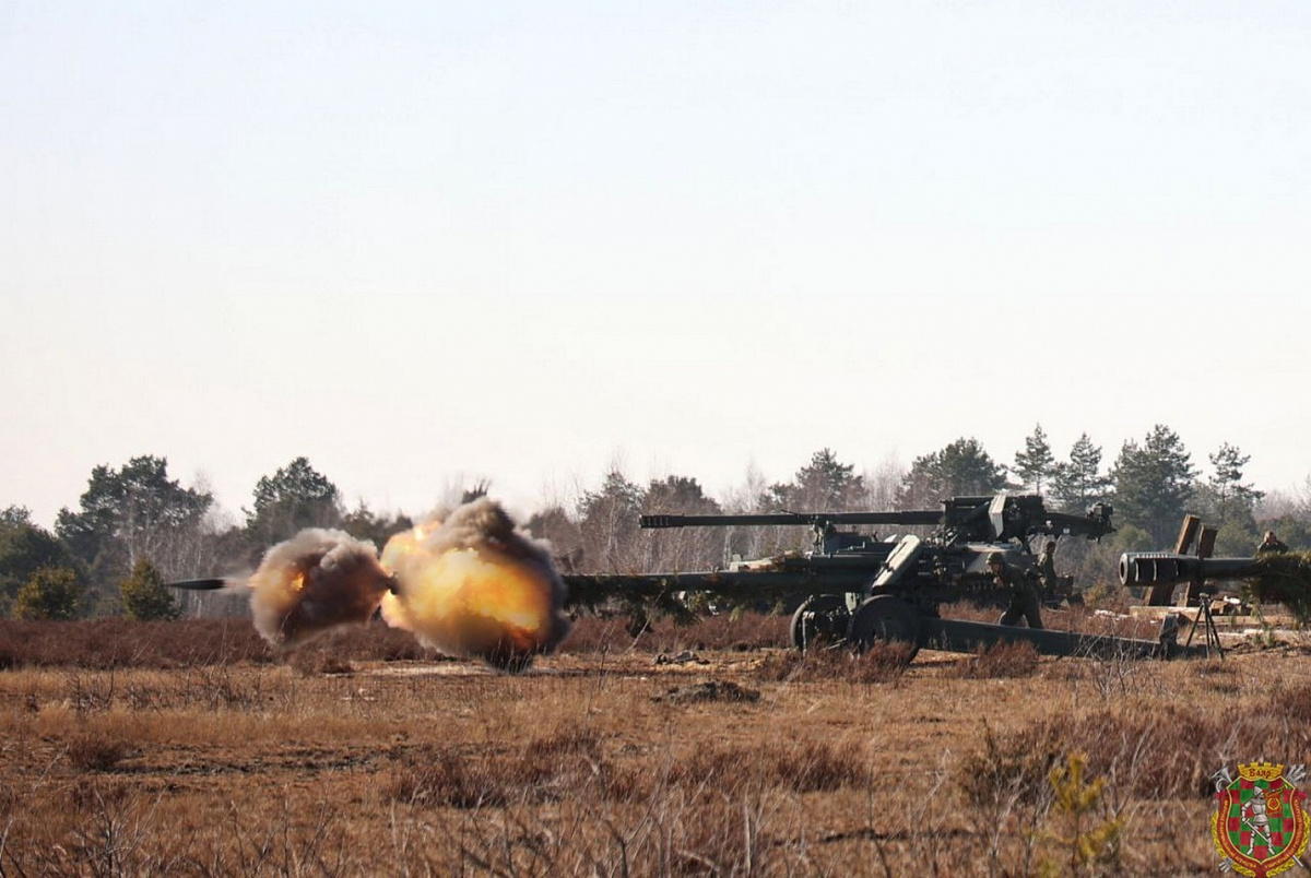 В эти дни с военнослужащими 111-й гвардейской артиллерийской бригады проходит полевой выход. В ходе него брестские артиллеристы выполняют стрельбу из 152-мм буксируемых гаубиц 2А65 «Мста-Б» и 152-мм самоходных артиллерийских установок 2С5 «Гиацинт».