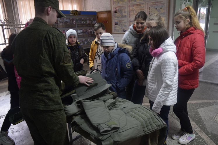 Военные инженеры рассказали гостям о службе в армии, о повседневной жизни, быте и учебе солдат, проходящих срочную военную службу. Ребята посетили солдатскую столовую, клуб, парк боевых машин. Учащимся был показан защитный костюм сапера, продемонстрирован металлоискатель, костюм водолаза, который весит 80 кг. Ребята с большим удовольствием посмотрели на работу служебных собак.