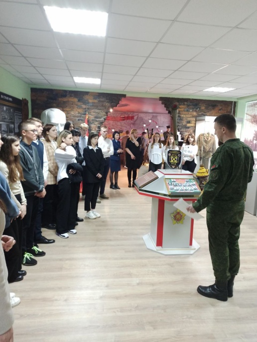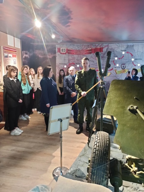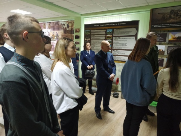 Военнослужащие 51-й гвардейской артиллерийской бригады приняли участие в работе диалоговой площадки «Историческая память: геноцид», организованной прокуратурой области и района с учениками 10-11 классов городских школ. В рамках мероприятия школьники ознакомились с экспозицией комнаты боевой славы 51 абр.