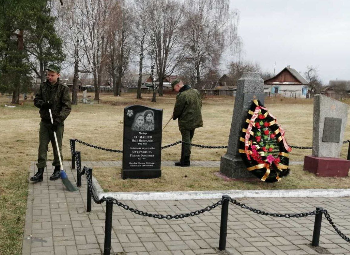 Военнослужащие 51-й гвардейской артиллерийской бригады приняли активное участие в республиканском субботнике по наведению порядка на территории, ремонту и поддержанию памятников и братских могил защитников Отечества павших в годы Великой отечественной войны.