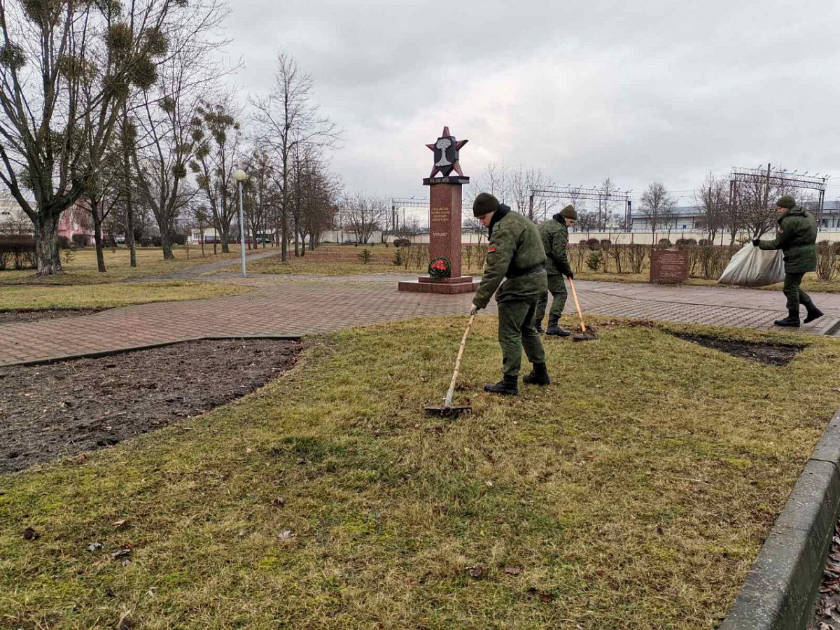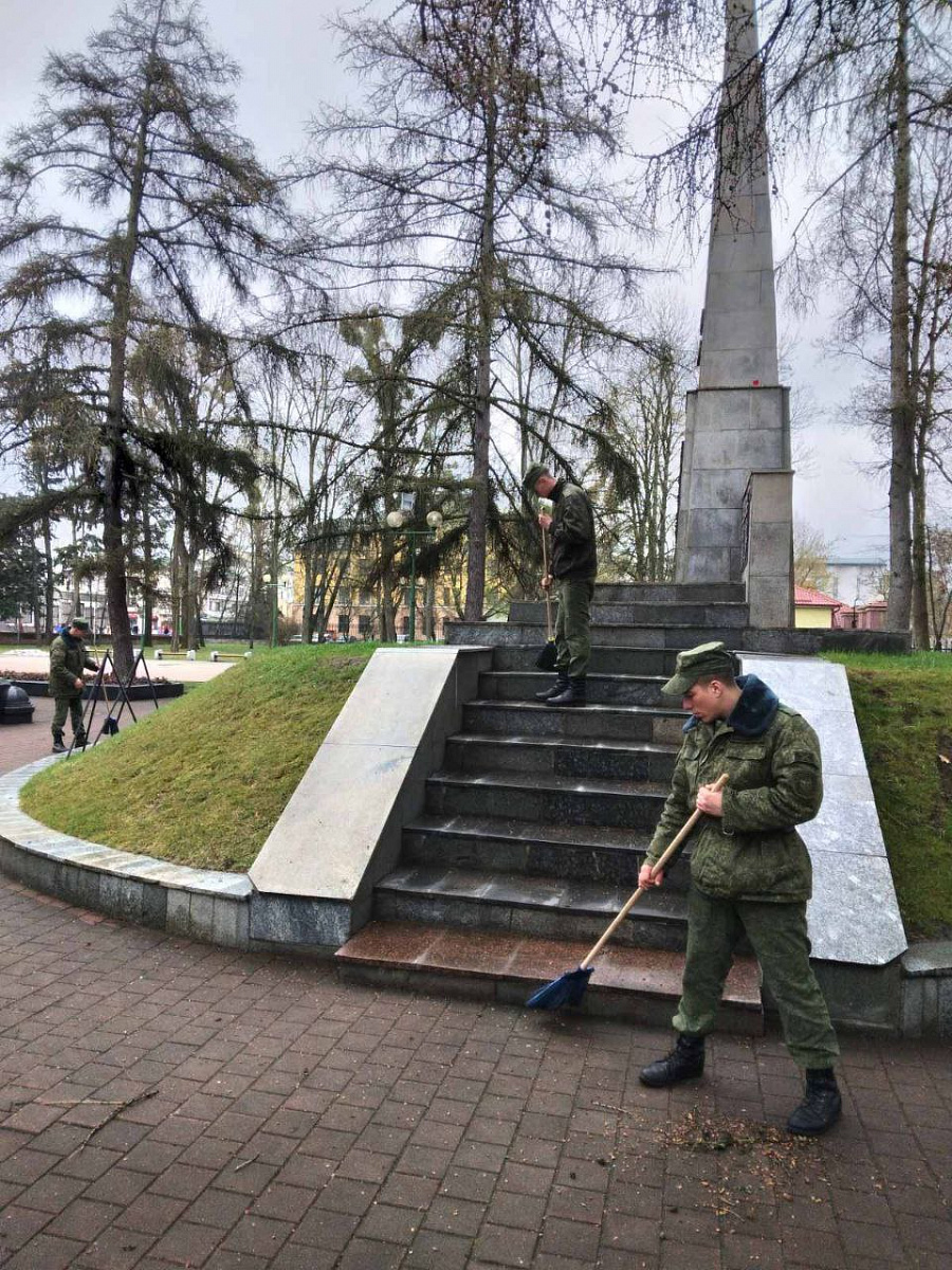 Военнослужащие 111-й гвардейской артиллерийской бригады и 48-го отдельного батальона РЭБ наводят порядок как на пунктах постоянной дислокации, так и на территориях городских объектов, таких как мемориальный комплекс «Брестская крепость-герой», мемориалы, места воинских захоронений.