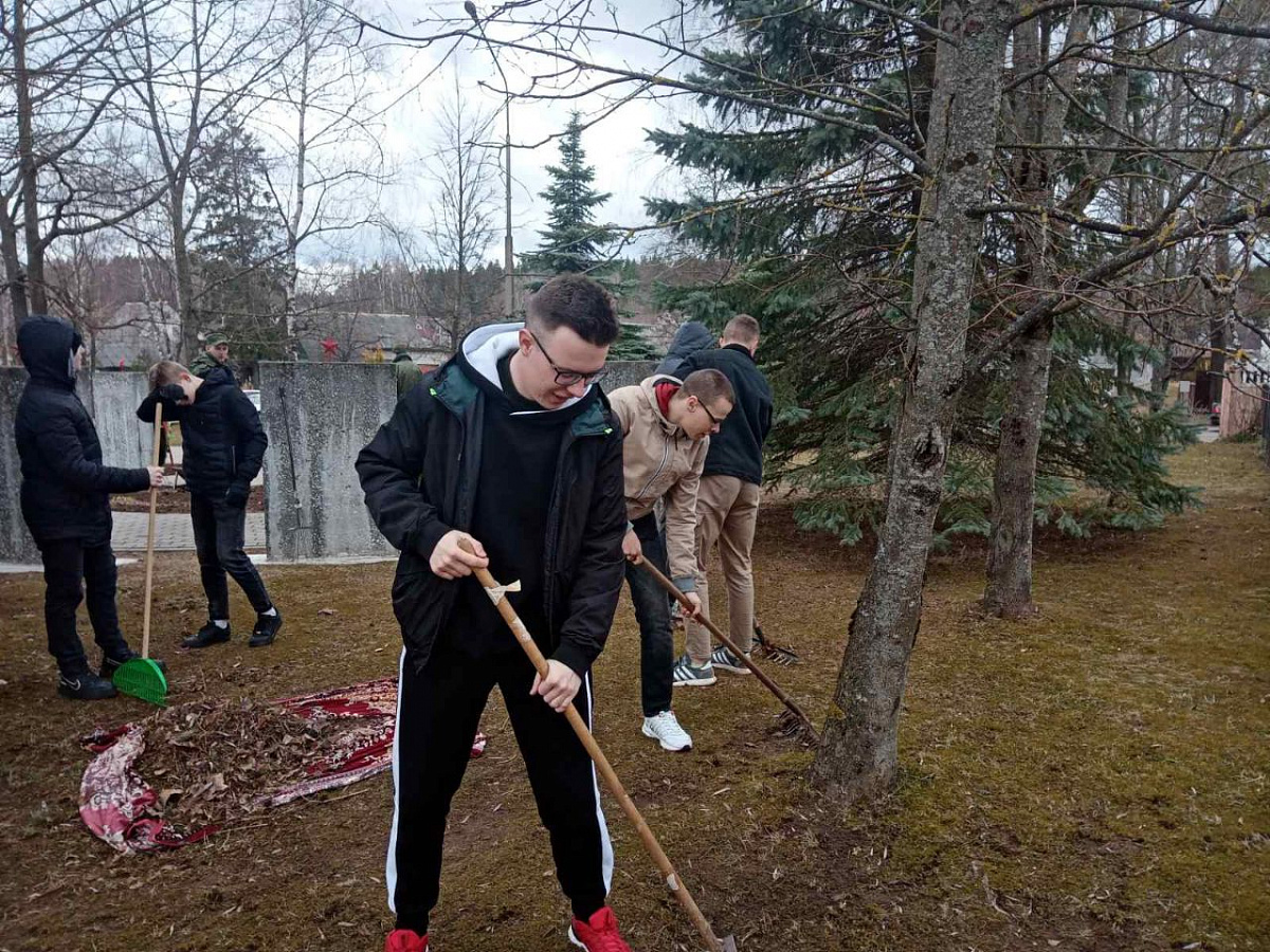 В том числе на воинских памятниках, братских могилах и захоронениях. Совместно с руководством культурно-спортивного центра агрогородка Колодищи наведен порядок на прилегающей территории центра.
