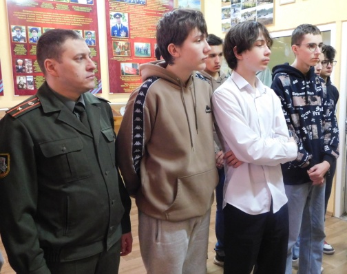 На контрольно-пропускном пункте гимназистов встретил заместитель командира по идеологической работе инженерно-технического батальона Сергей Барковский. Офицер познакомил ребят с расположением воинской части и объектами на ее территории.