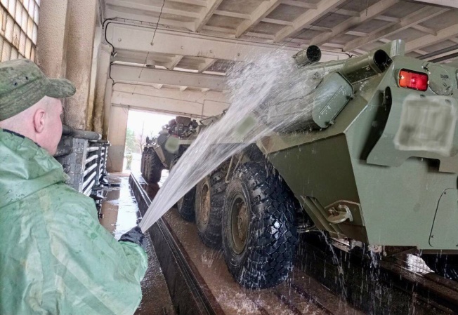 Воины проводят техническое обслуживание, дозапрявляют и моют технику. Весь личный состав осознает важность и необходимость обслуживания техники и его своевременного ремонта.