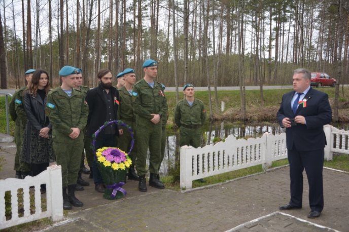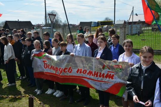 В ходе выдвижения в пункт постоянной дислокации участники марафона сделали остановку и возложили венок на месте массового уничтожения мирных жителей, которое размещается на 7-м километре автодороги Ганцевичи – Хотыничи. Здесь похоронены 300 мирных жителей, которые были расстреляны 12 августа 1941 года.