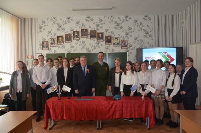 Затем в Хотыничской средней школе состоялась встреча участников патриотического марафона со школьниками в рамках проекта «Диалог поколений. Цветы Великой Победы».