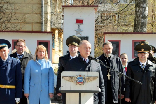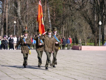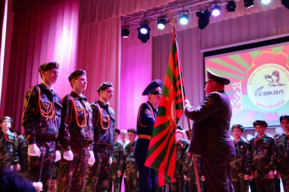 Во время открытия председатель Минской районной организации ветеранов, Почетный гражданин Минского района подполковник в отставке А. М. Моисиеев вручил знамя военно-патриотическому клубу.