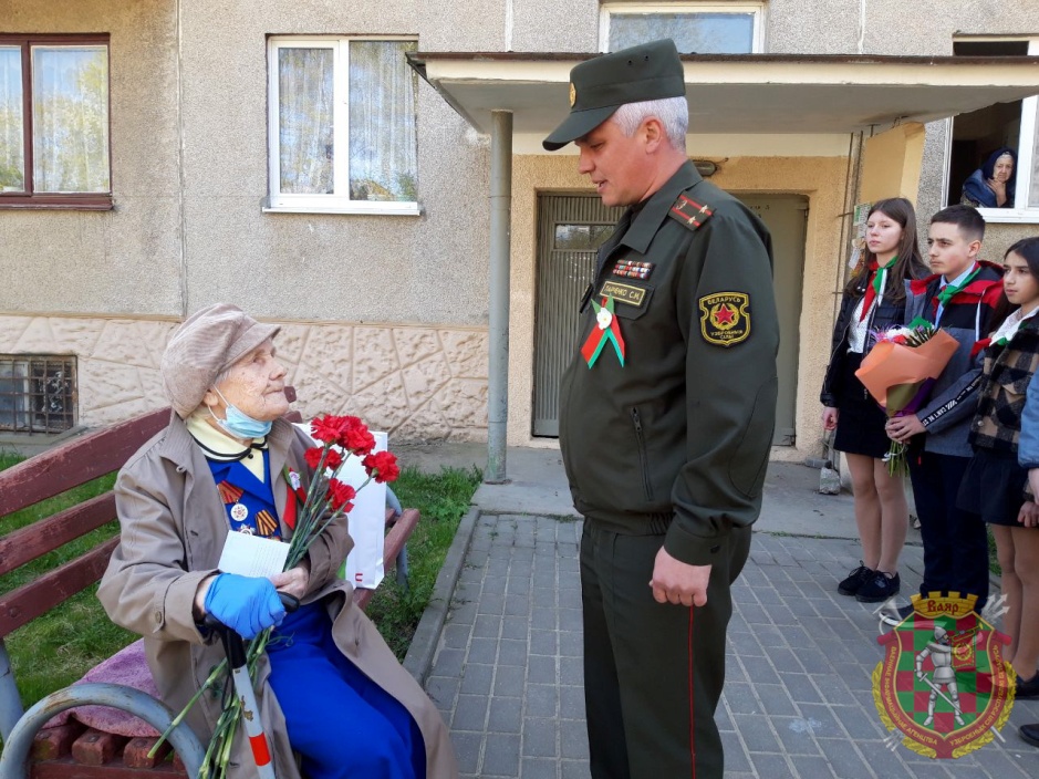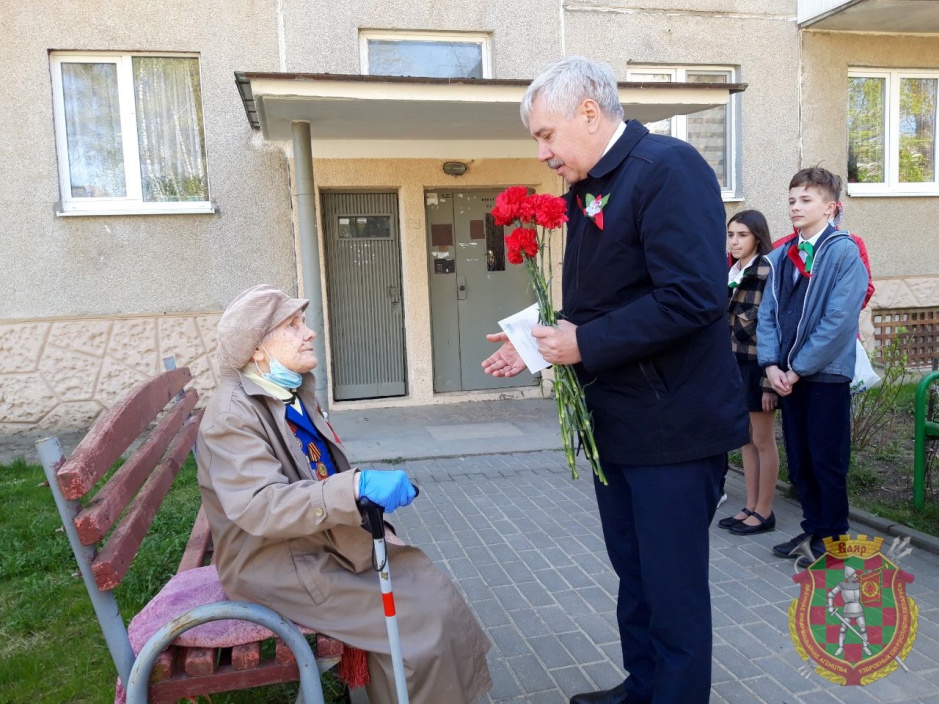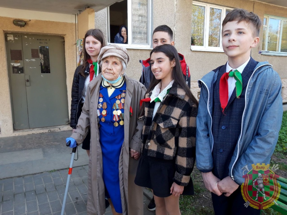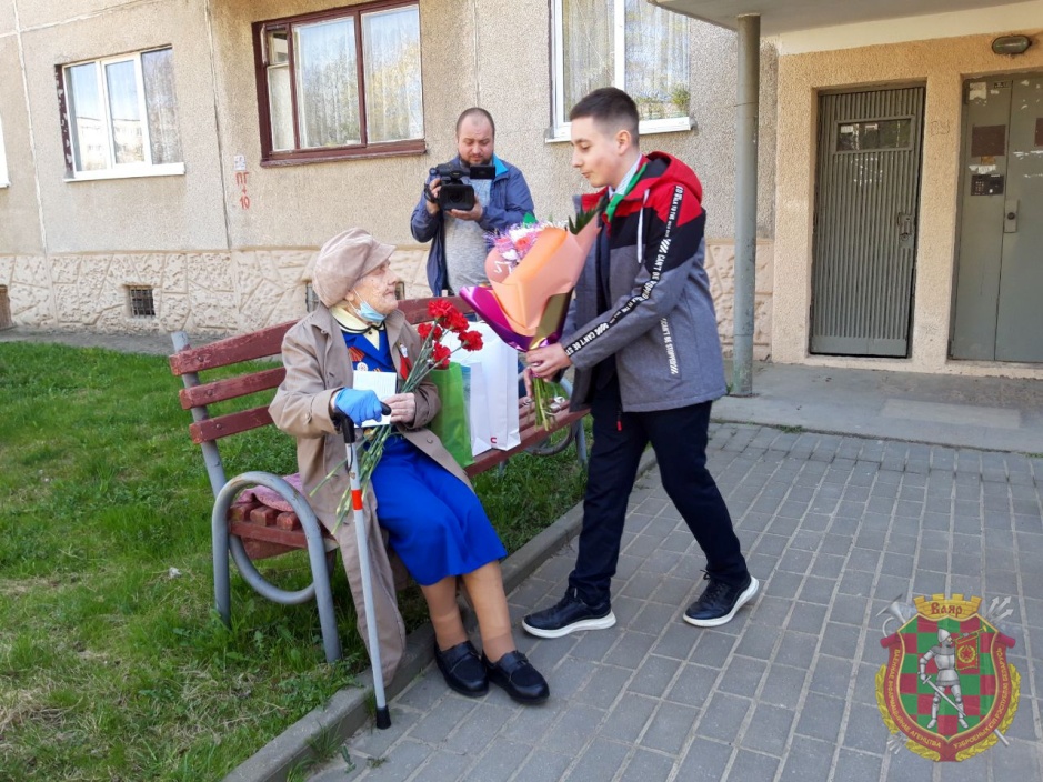 С наступающим праздником Победы ее поздравили, вручили цветы и подарки глава администрации Ленинского района города Гродно Игорь Бобырь, председатель районной ветеранской организации подполковник в отставке Владимир Кувшинов, начальник группы территориальной обороны военного комиссариата города Гродно и Гродненского района подполковник Сергей Ларченко. Со стихотворным поздравлением к ветерану обратились пионеры гимназии №5 города Гродно.