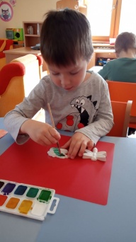 Маленькие патриоты с большой радостью раскрасили фигуры из гипса в виде военной техники и насекомых.