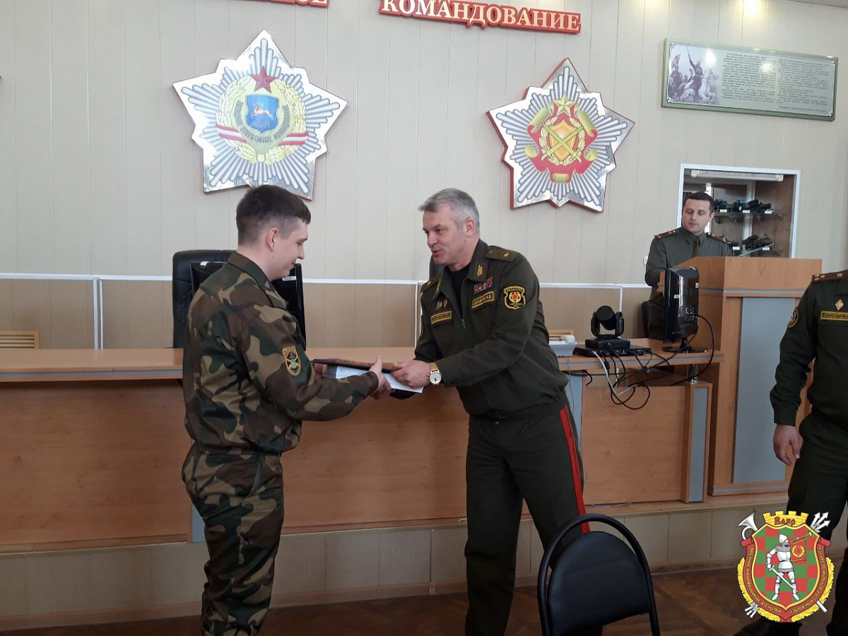 В Гродненском гарнизоне 7 мая прошло чествование командующим войсками Западного оперативного командования генерал-майором Игорем Демиденко военнослужащих срочной службы, добившихся высоких показателей в боевой подготовке и воинской дисциплине.