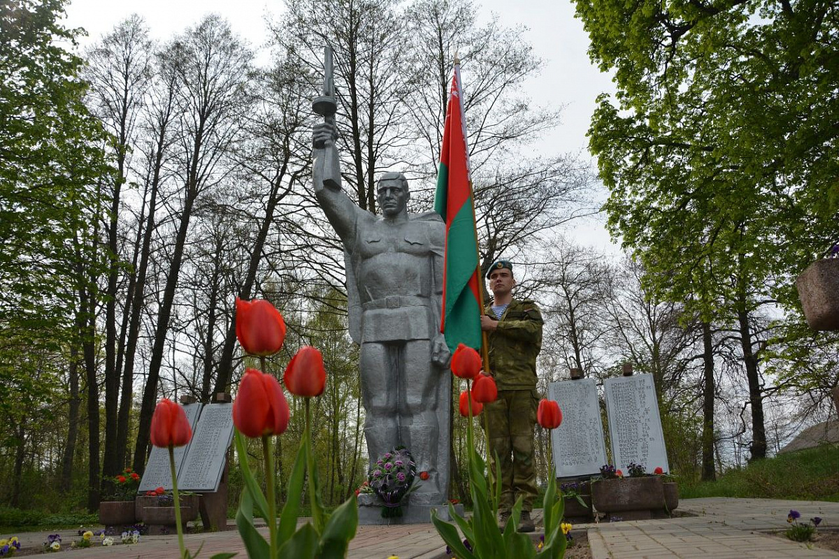 В деревне Миньковичи военнослужащие 38-й Брестской отдельной гвардейской десантно-штурмовой бригады провели митинг с возложением венков и цветов у Обелиска погибшим землякам.