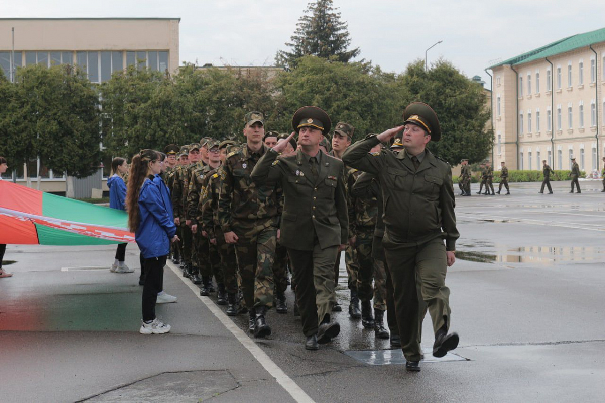Такое молодежь Слонимщины произнесла торжественную клятву государственной символики. Мероприятие завершилось прохождением торжественным маршем военнослужащих.