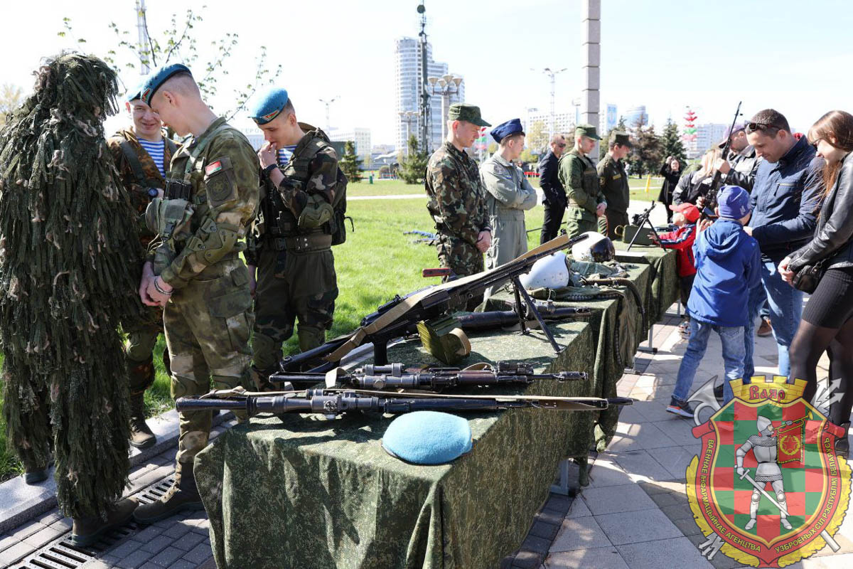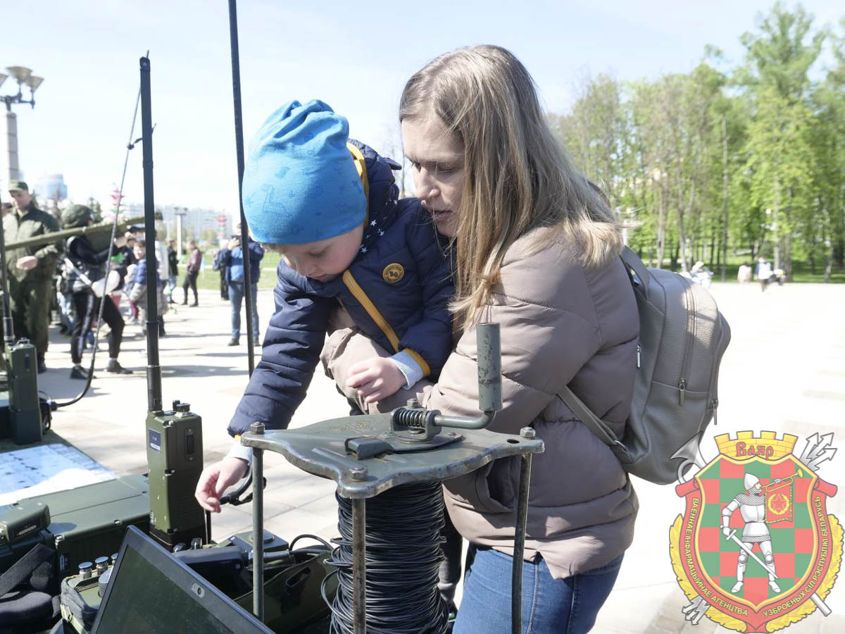 В Парке Победы уже собираются минчане и гости столицы. На площадке, где представлены факультеты Военной Академии Республики Беларусь, уже многолюдно. Мальчишки и девчонки спешат потрогать оружие, познакомиться с аппаратурой войск связи, примерить шлемофон.