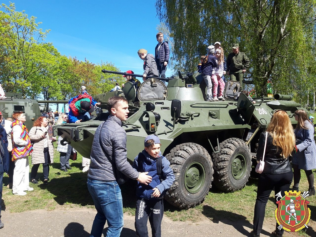 Также на территории Кургана Славы развернулись спортивные площадки и интерактивные зоны от гродненских университетов, школ и гимназий, предприятий города, посвященные истории Великой Победы. Большим успехом у детворы и их родителей пользуются выставки военной формы одежды, вооружения и военной техники, организованные воинскими частями Западного оперативного командования и военным факультетом в ГрГУ, тематические выставки Гродненской пограничной группы, МЧС, ГАИ, МВД.